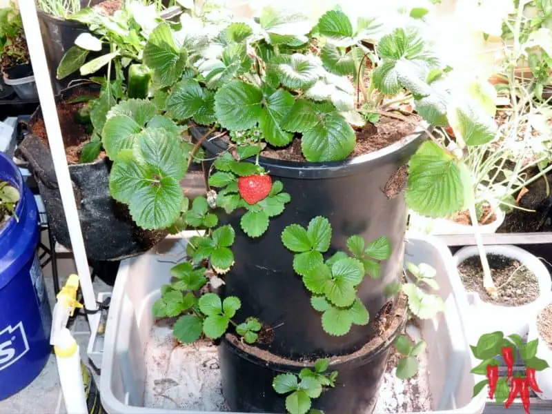 Here is how to build a DIY strawberry tower. Most people use 5-gallon buckets but I used 5-gallon pots instead. I have 20 sites for my Albion strawberries. Building a vertical strawberry garden is a real space saver.
